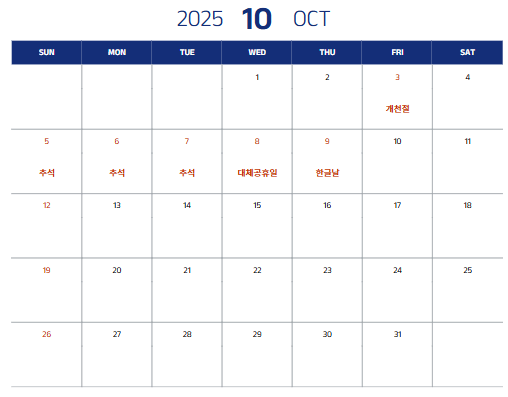 • 10월 8일(수): 추석 대체공휴일